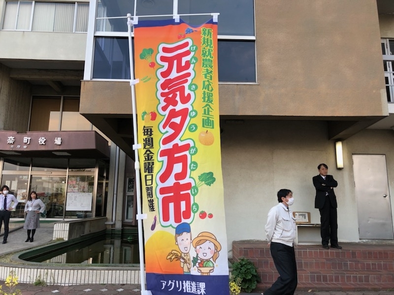 前回の終わりにシゲがちょこっと触れていましたが、毎週金曜日の夕方5時15分から1時間ほど、役場庁舎前で「元気夕方市」が開催されています!