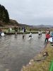 水温はひんやりですが、元気に鮭のつかみ取りをする子供たちが....!