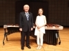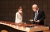 演奏が終わると、坂口さんに促され……、大島町長、マリンバに初挑戦です。
