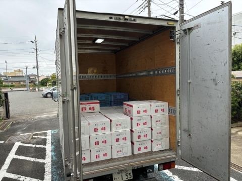 まずは、伊奈巨峰組合、伊奈梨出荷組合にご協力いただき、伊奈町自慢の果物を仕入れます。
