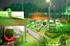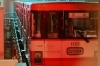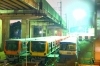 大きな照明塔が車庫に聳え立ち、ニューシャトルの小さな屋根を照らします。この小さな車両たちが地域に欠かせない足になっているのですね。