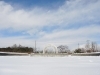 空の青さと、雪の白さが際立つ冬のバラ公園