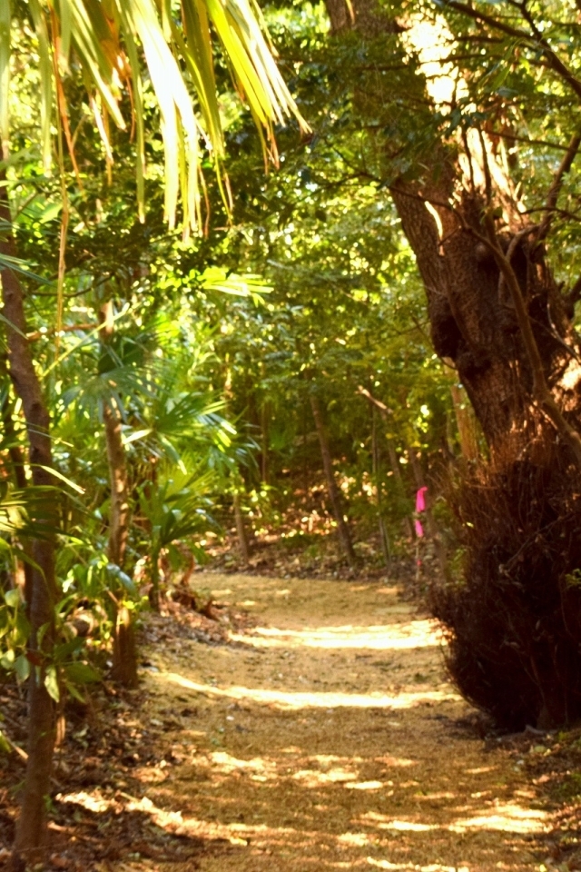 ウッドチップの路はとてもふかふかしています。歩いているだけでもわくわくするほど、自然のじゅうたんのような不思議な感触です!