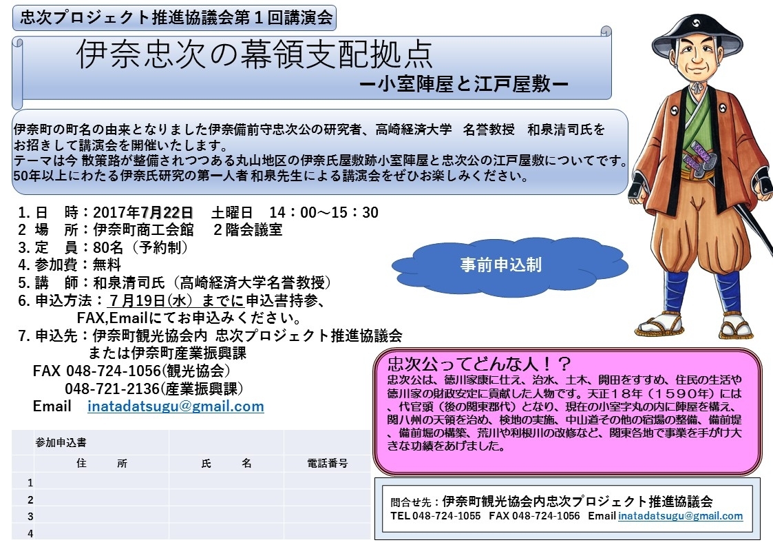 問合せ先:伊奈町観光協会内 忠次プロジェクト推進協議会
