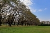 サクラ並木に面した芝生の広場 散策路に面し、木々を背景して森の中いるような撮影も。