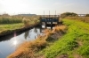 原市沼川と堰 奥に見えるのは東北・上越新幹線