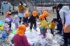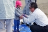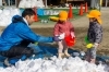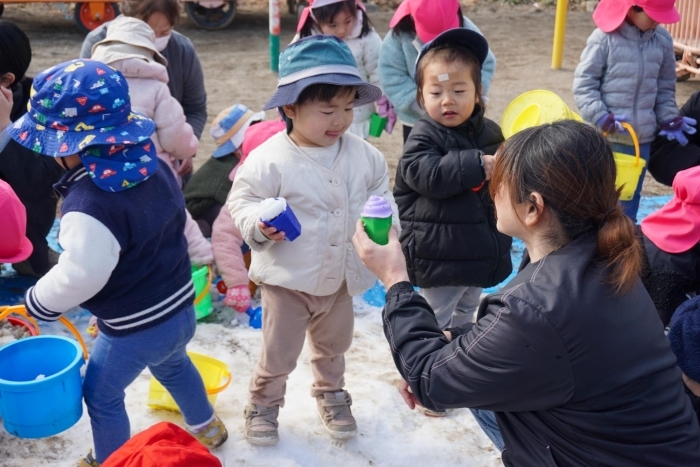 園児に雪を降らせてあげる職員