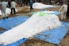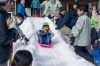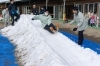 朝8時に4tトラック2台で届けられた雪は、両町関係者によって大小2基のすべり台になりました。