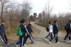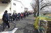 9:00になり、生徒たちが学校を出発していきます。この日は高校から東周りのコースを2年生が、西周りに1年生が歩くということで、筆者は西周りのコースに同行させていただきました。