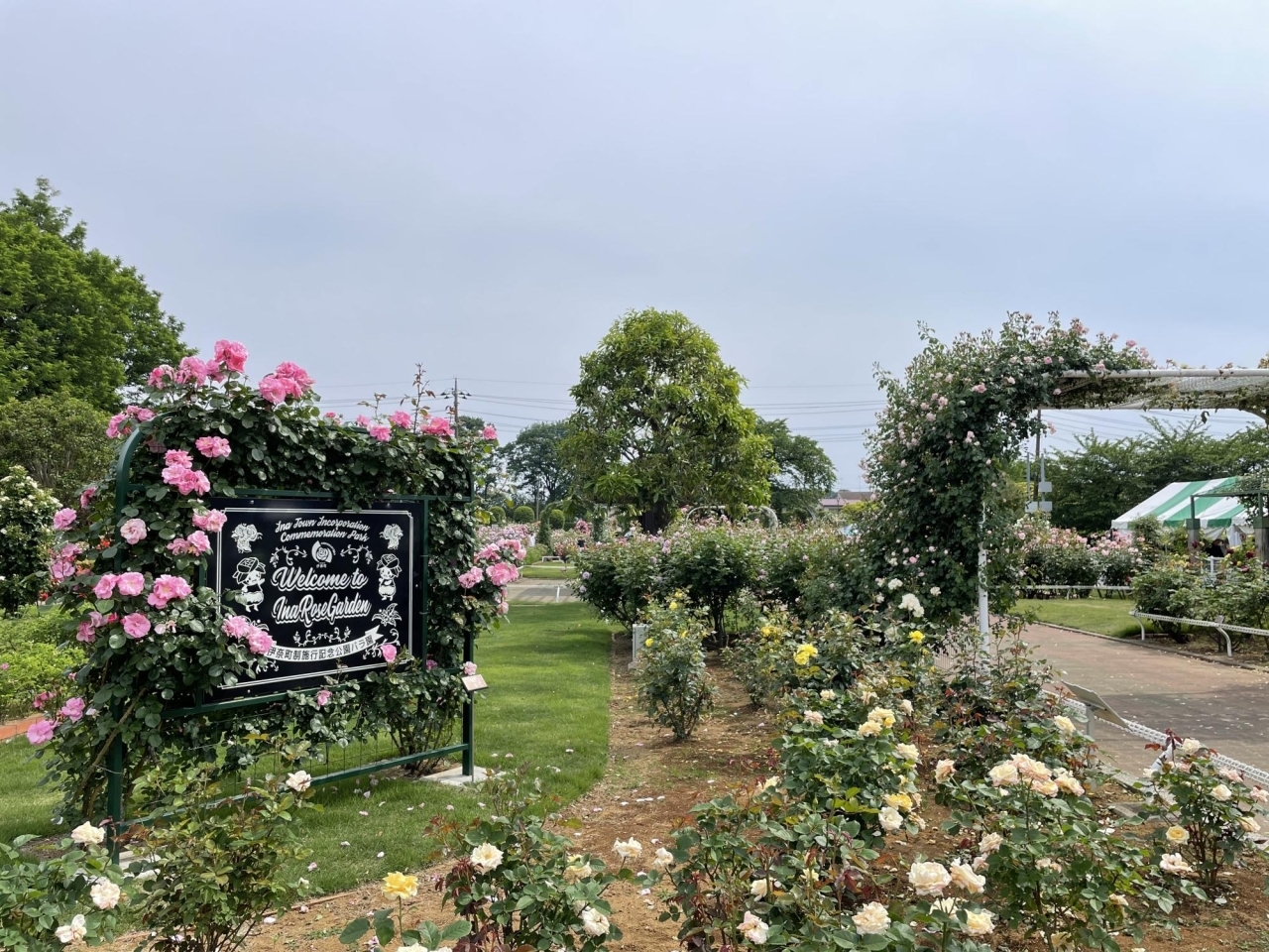 今回のバラ園めぐりの最終目的地。われらが伊奈町に戻ってきました! バラ園は満開&見頃を迎え、平日ながら多くの人でにぎわっていました。